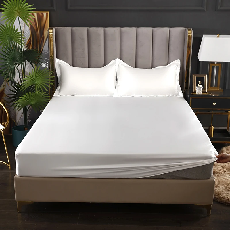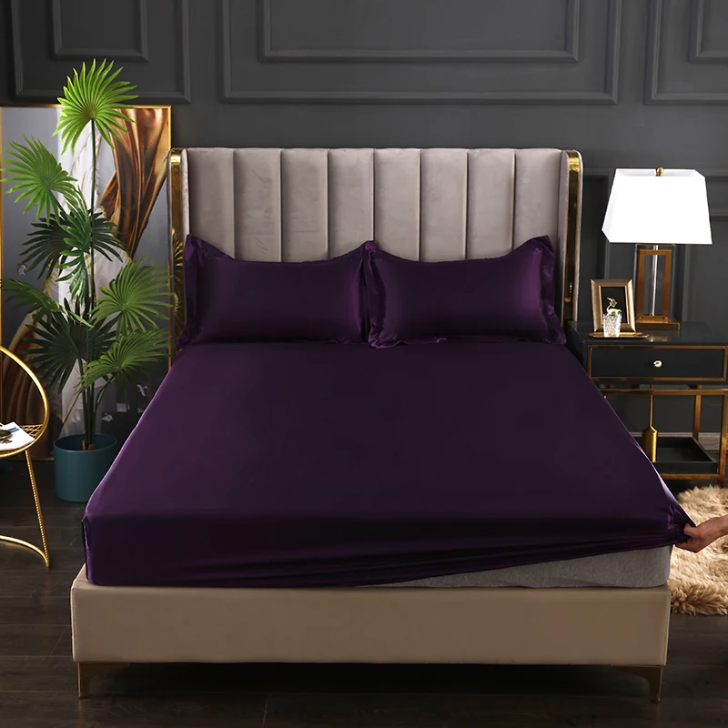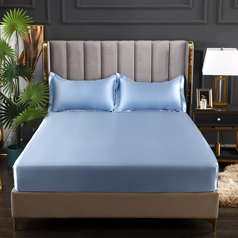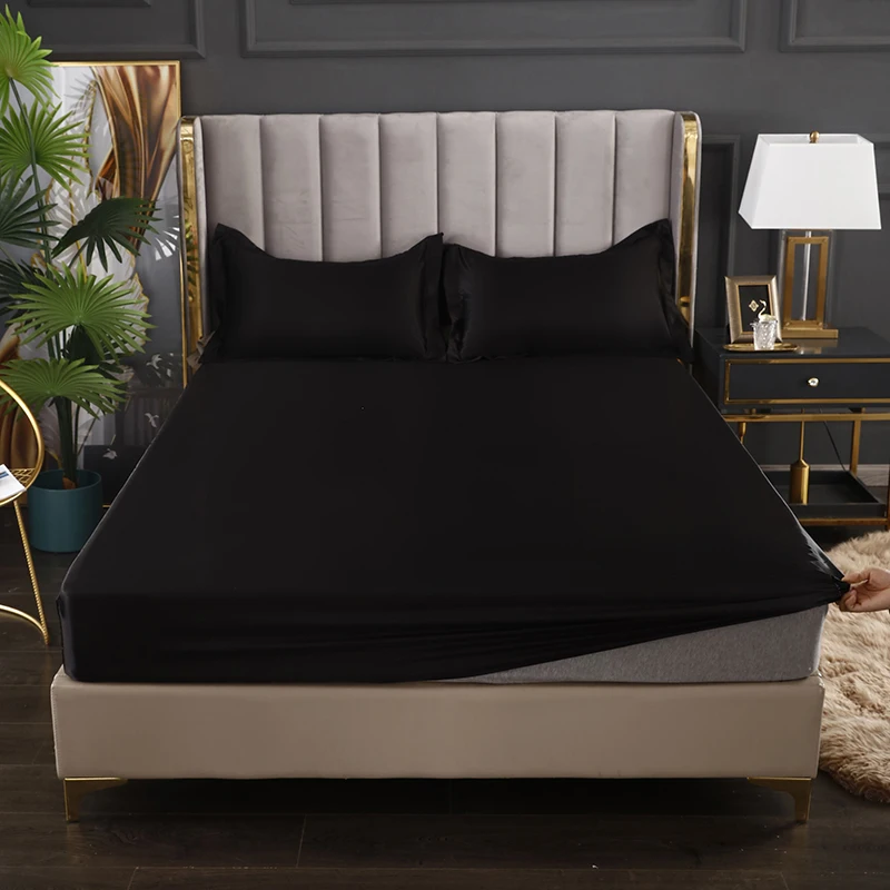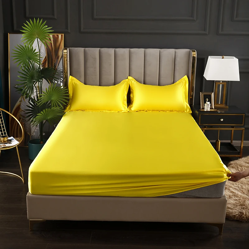 Satin Sheets Fitted Sheet Solid Color Rayon Mattress Cover Elastic Band Bed Sheet King 200x200 200x220 No Pillowcase Beddings